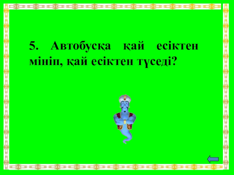Слайд 205. Автобусқа қай есіктен мініп, қай есіктен түседі?
