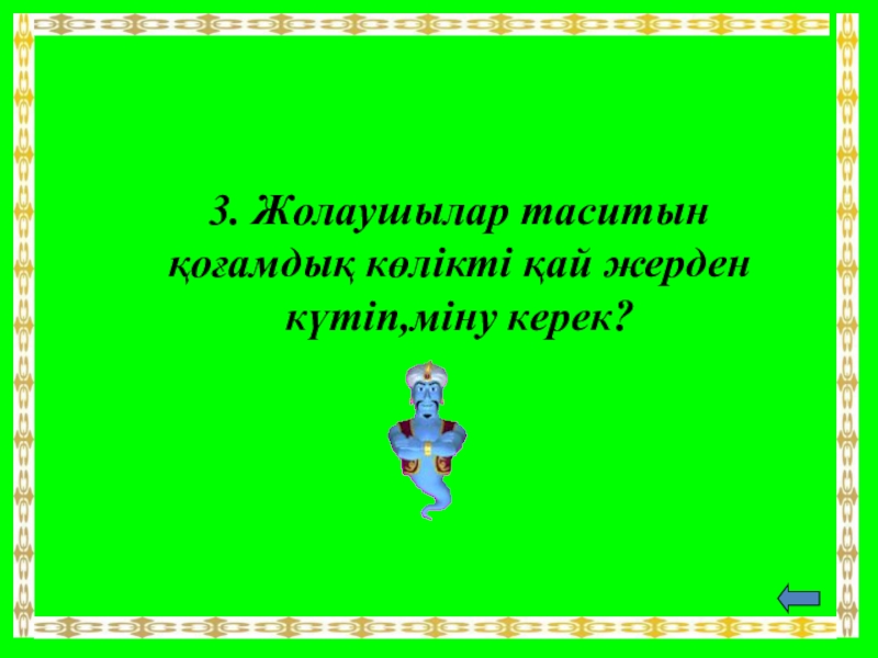 Слайд 183. Жолаушылар таситын қоғамдық көлікті қай жерден күтіп,міну керек?