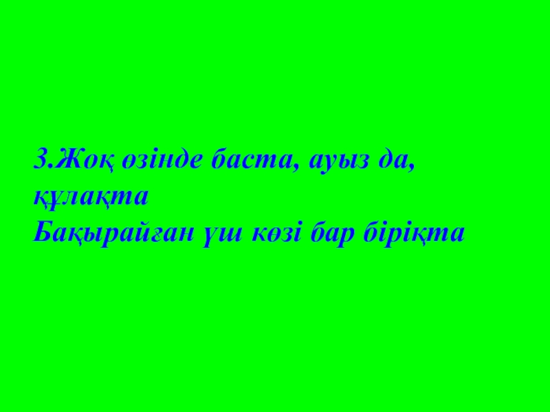 Слайд 313.Жоқ өзінде баста, ауыз да, құлақта Бақырайған үш көзі бар біріқта
