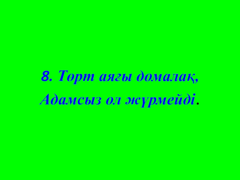Слайд 418. Төрт аяғы домалақ, Адамсыз ол жүрмейді.