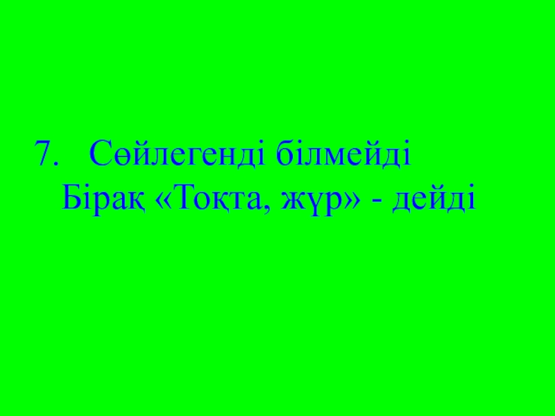 Слайд 397. Сөйлегенді білмейді Бірақ «Тоқта, жүр» - дейді