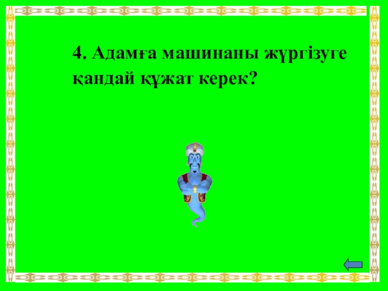 Слайд 194. Адамға машинаны жүргізуге қандай құжат керек?