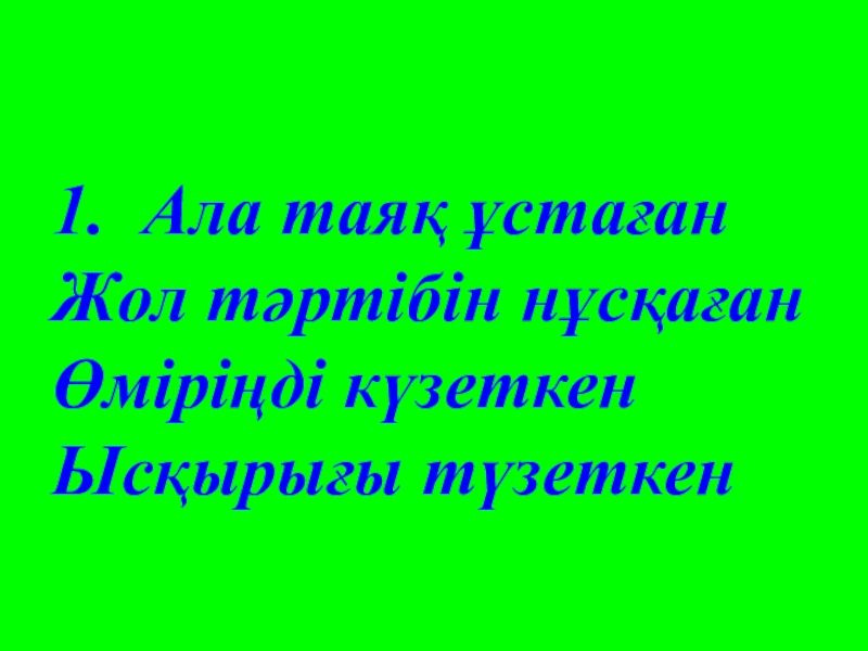 1. Ала таяқ ұстаған Жол тәртібін нұсқаған Өміріңді күзеткен Ысқырығы түзеткен
