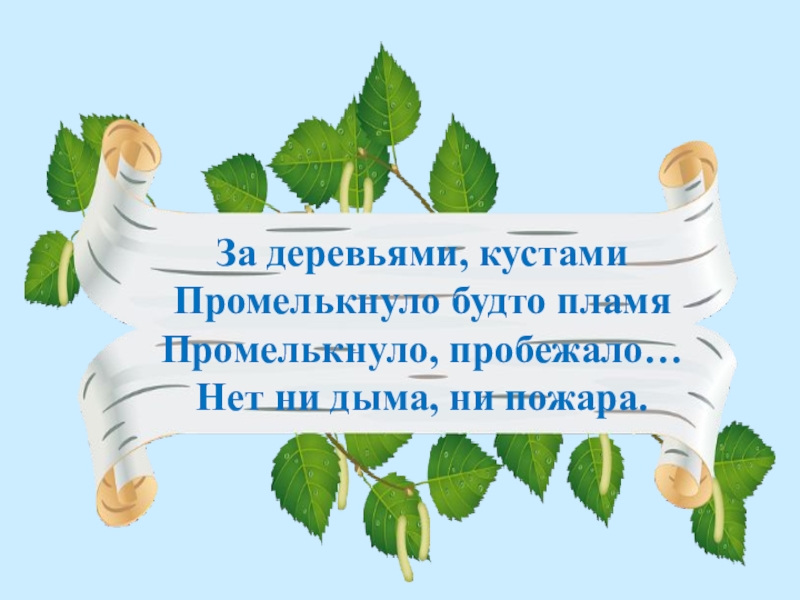 За деревьями, кустамиПромелькнуло будто пламяПромелькнуло, пробежало…Нет ни дыма, ни пожара.