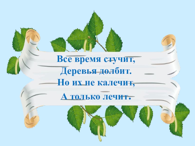 Все время стучит,Деревья долбит.Но их не калечит,А только лечит.