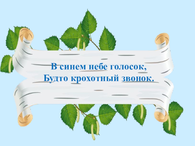 Слайд 22В синем небе голосок, Будто крохотный звонок.