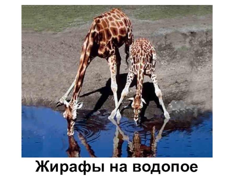 Слайд 11Жирафы на водопое