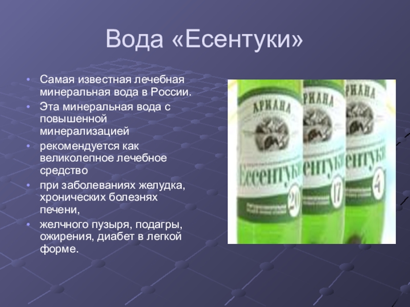 Слайд 5Вода «Есентуки»