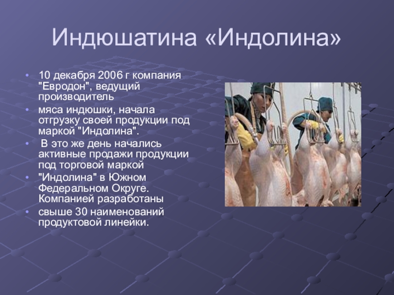 Слайд 7Индюшатина «Индолина»