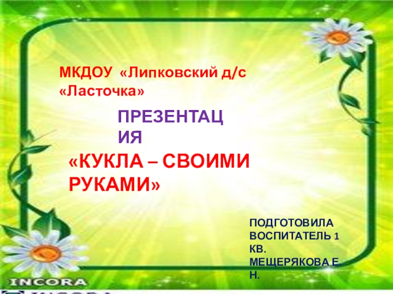 МКДОУ «Липковский д/с «Ласточка»ПРЕЗЕНТАЦИЯ«КУКЛА – СВОИМИ РУКАМИ» ПОДГОТОВИЛА ВОСПИТАТЕЛЬ 1 КВ. МЕЩЕРЯКОВА Е.Н.