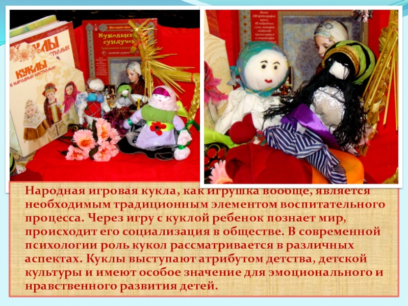 Слайд 12 Народная игровая кукла, как игрушка вообще, является необходимым традиционным