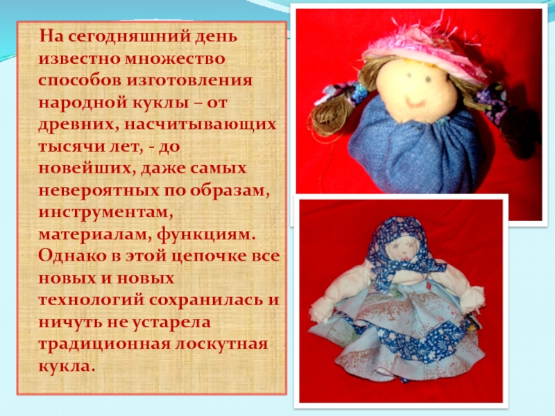 Слайд 8 На сегодняшний день известно множество способов изготовления народной куклы