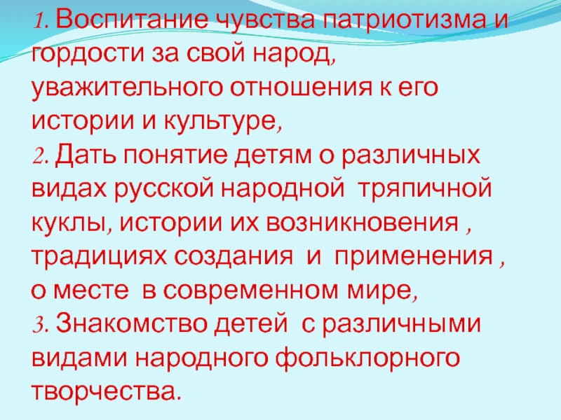 1. Воспитание чувства патриотизма и гордости за свой народ, уважительного