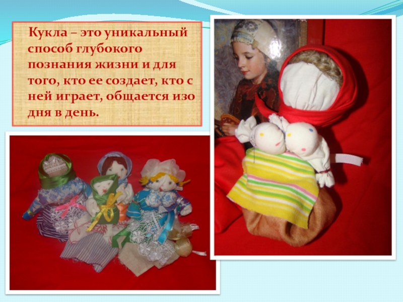 Слайд 7 Кукла – это уникальный способ глубокого познания жизни и