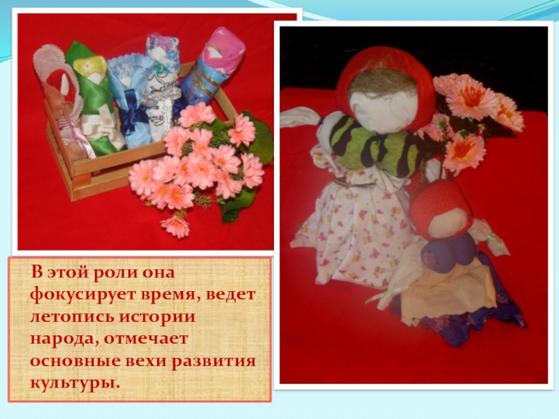 Слайд 6 В этой роли она фокусирует время, ведет летопись истории