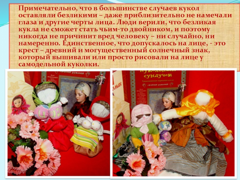 Слайд 11 Примечательно, что в большинстве случаев кукол оставляли безликими –