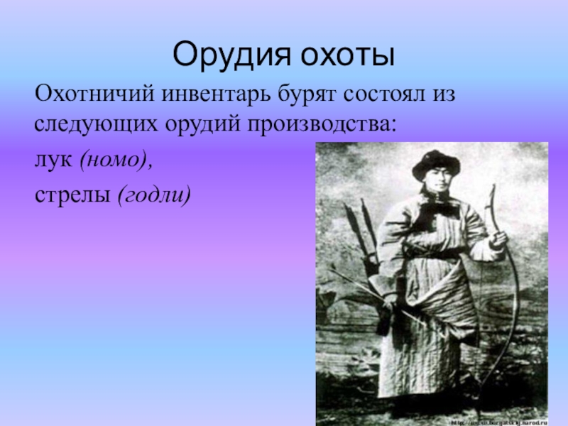 Охотничий инвентарь бурят состоял из следующих орудий производства: