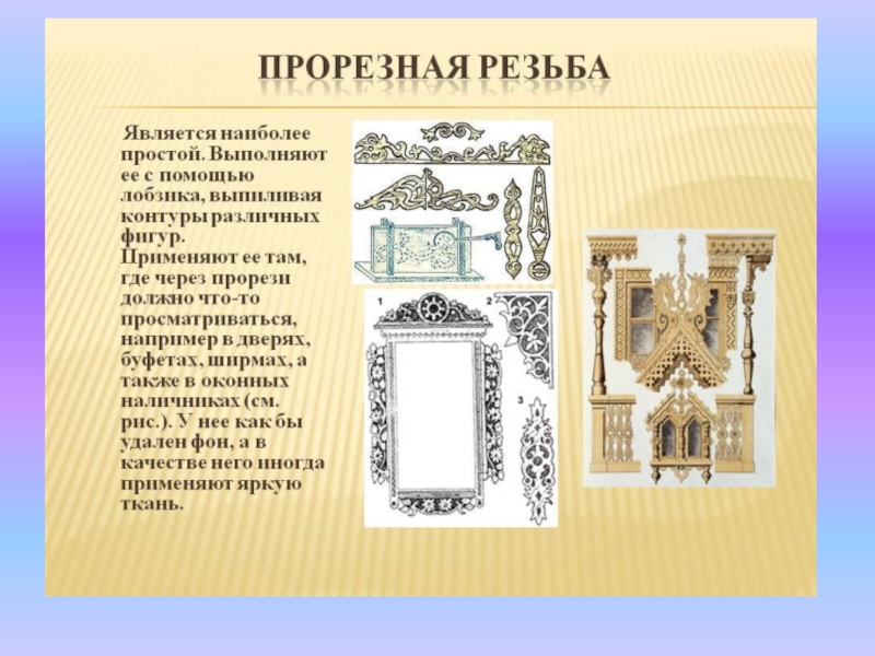 Пропильная деревянная резьба широкое распространение в народном искусстве получила в XIX