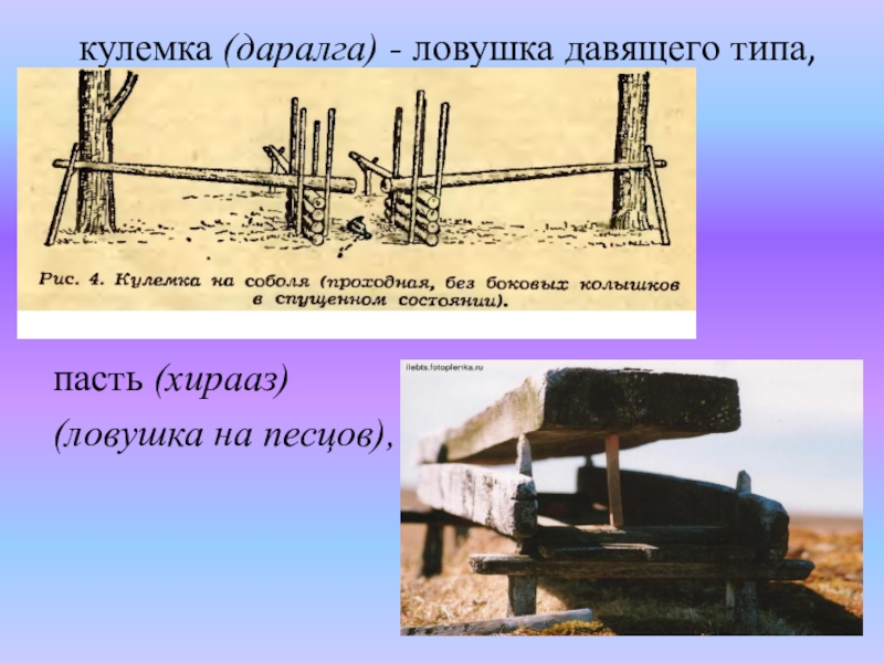 Слайд 25кулемка (даралга) - ловушка давящего типа,