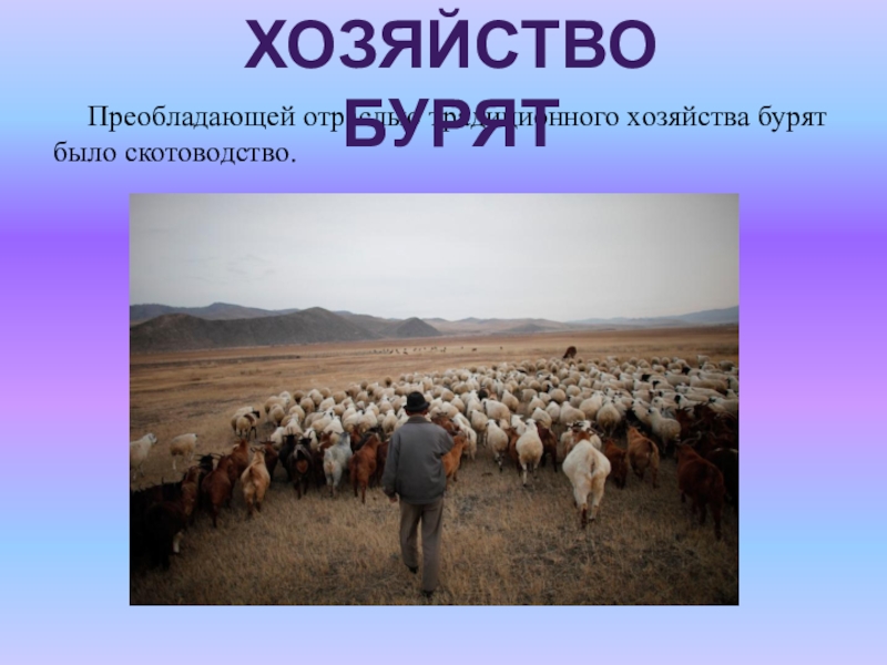 Преобладающей отраслью традиционного хозяйства бурят было скотоводство.