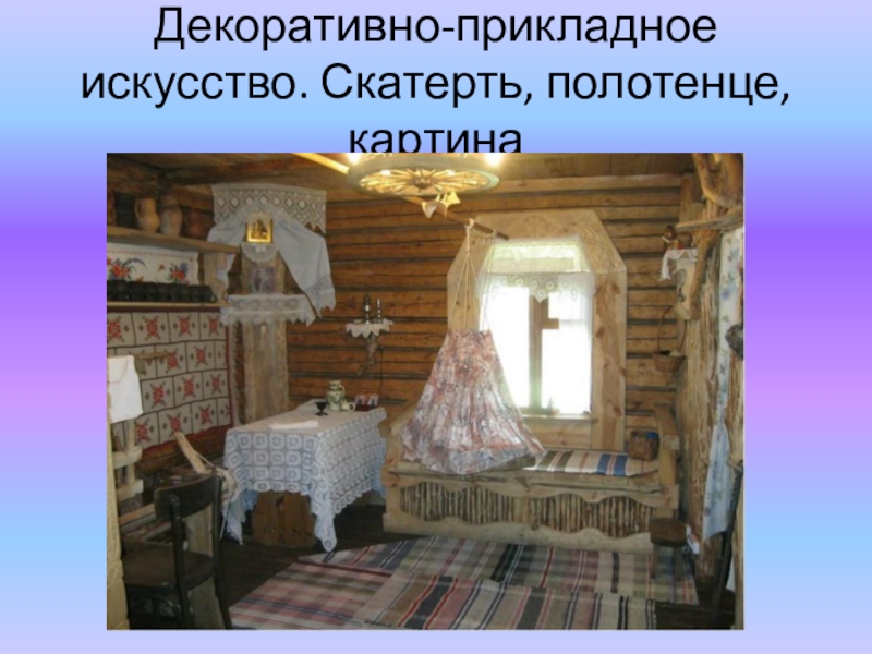 Слайд 95Декоративно-прикладное искусство. Скатерть, полотенце, картина