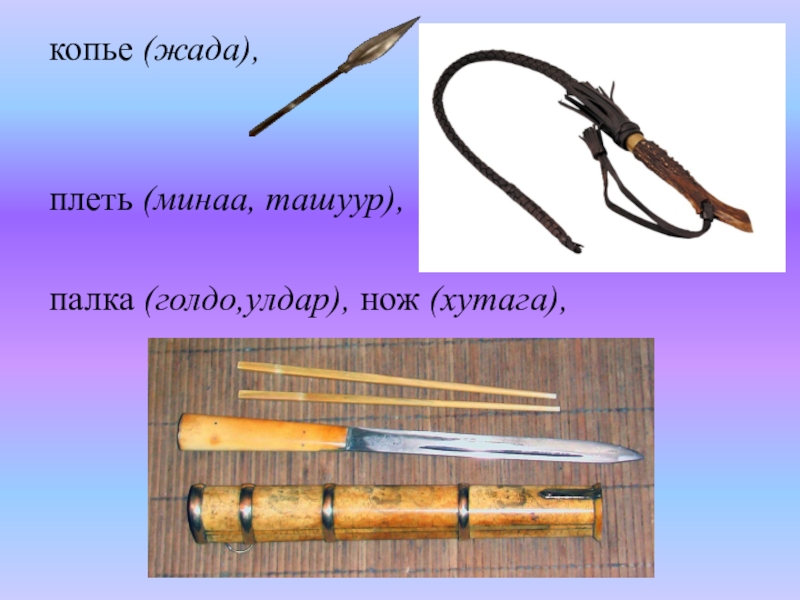 палка (голдо,улдар), нож (хутага),