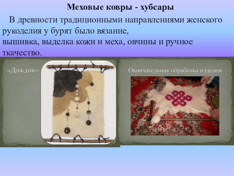 Слайд 32Меховые ковры - хубсары