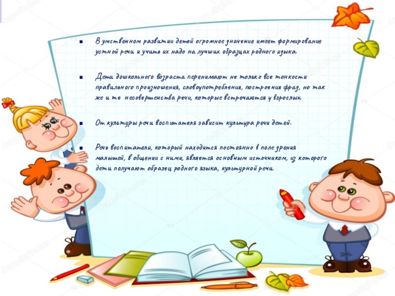В умственном развитии детей огромное значение имеет формирование устной речи