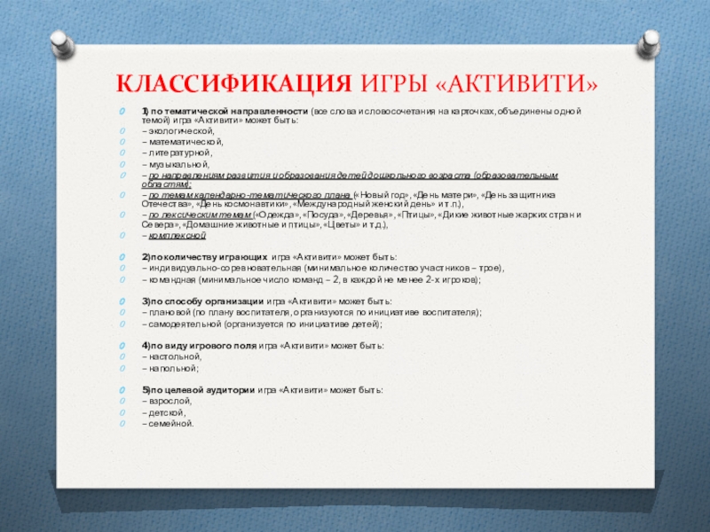 Слайд 3КЛАССИФИКАЦИЯ ИГРЫ «АКТИВИТИ»