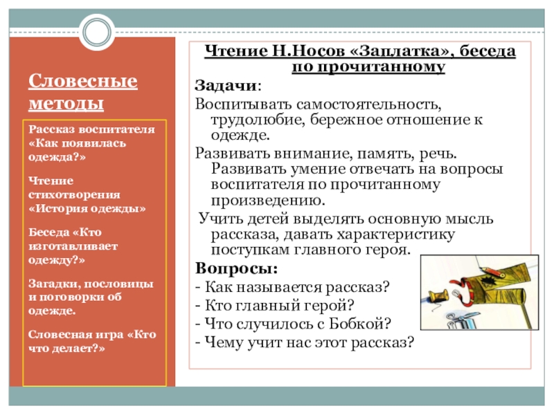 Чтение Н.Носов «Заплатка», беседа по прочитанному
