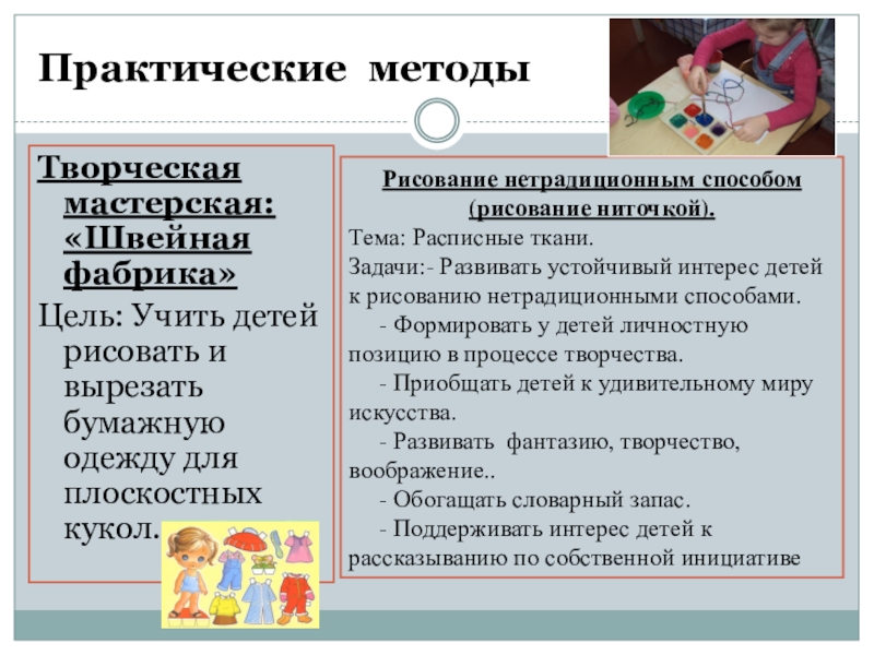 5. Развивать творчество и фантазию, учить создавать свою модель одежды, придумывать рисунок для ткани.