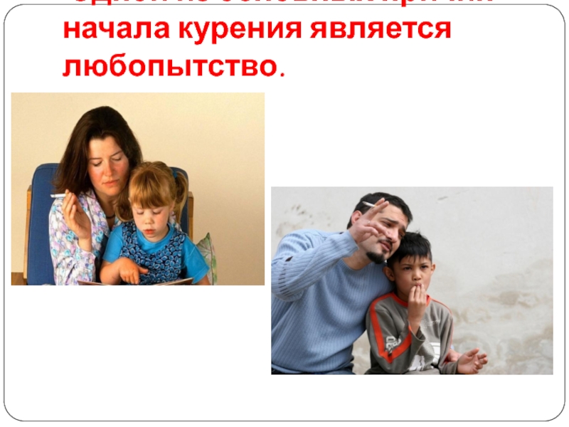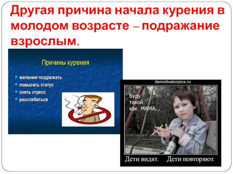 Слайд 6Другая причина начала курения в молодом возрасте – подражание взрослым.