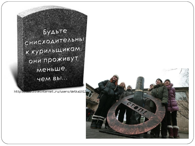 физическую активность. Курение портит цвет кожи. Никотин забирает свободу Человек становится его рабом.