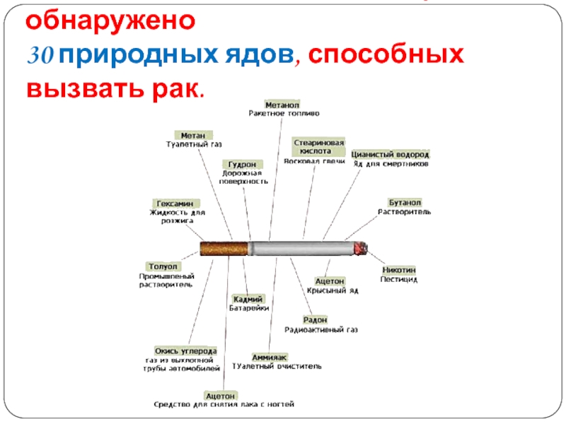 Слайд 9Запомните! В табачном дыму обнаружено 30 природных ядов, способных вызвать рак.