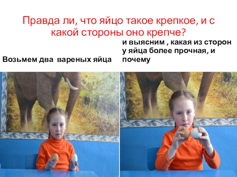 и выясним , какая из сторон у яйца более прочная, и почему