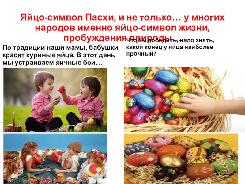 По традиции наши мамы, бабушки красят куриные яйца. В этот день мы устраиваем яичные бои…
