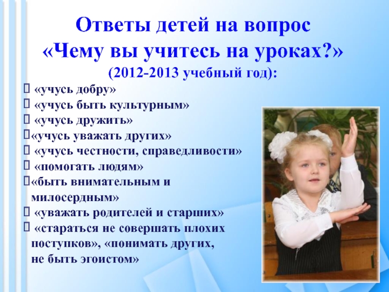 «Чему вы учитесь на уроках?» (2012-2013 учебный год):