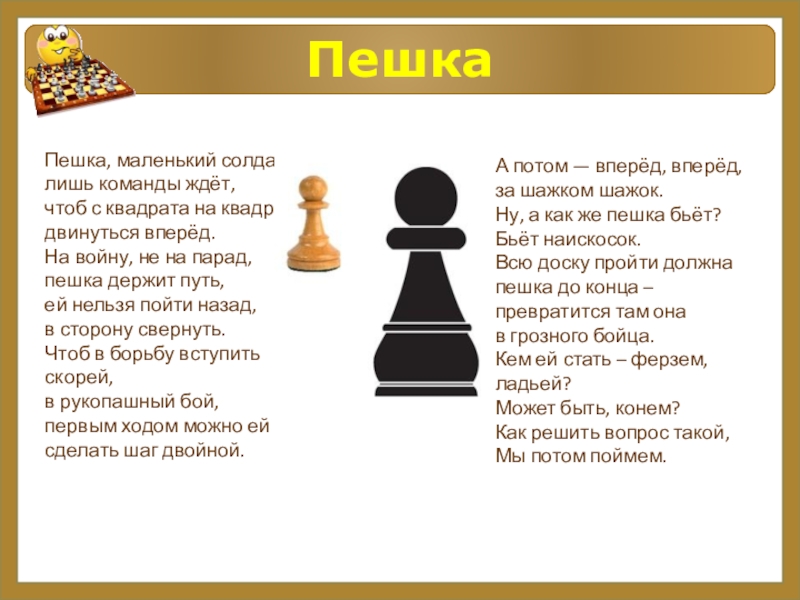 Шахматная Пешка – маленький человечек в круглом шлеме. Пехота, пехотинец, пешком –