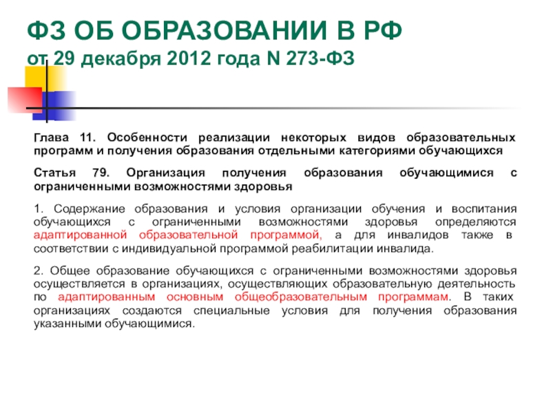ФЗ ОБ ОБРАЗОВАНИИ В РФ