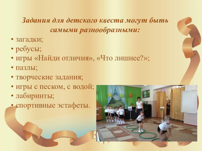 Слайд 10Задания для детского квеста могут быть самыми разнообразными: