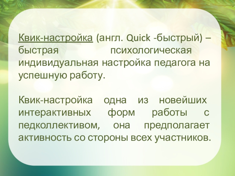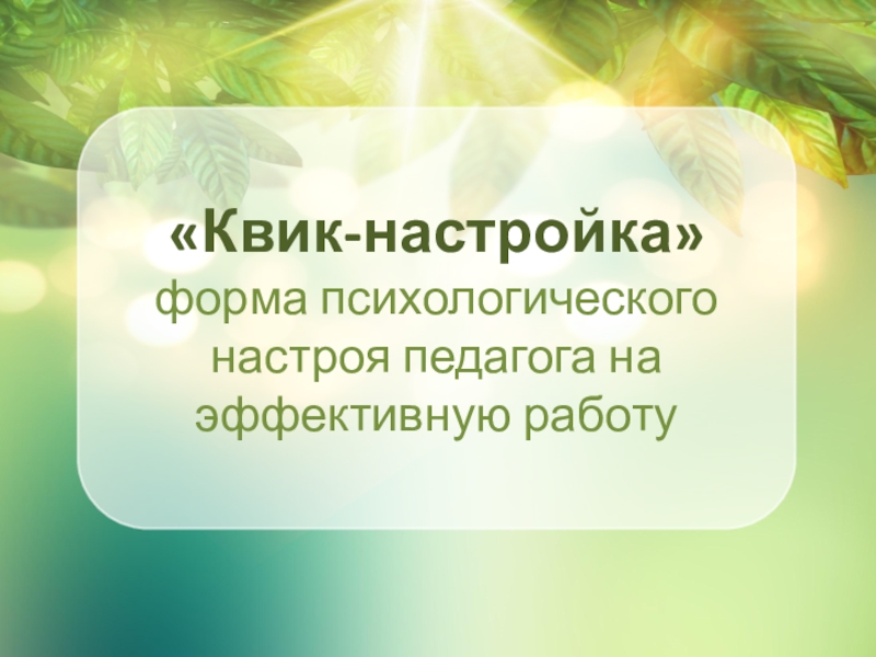Слайд 2Квик-настройка (англ. Quick -быстрый) – быстрая психологическая индивидуальная настройка педагога на
