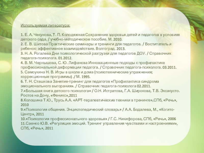 6. Т. Н. Сташкова Занятие-тренинг для педагогов «Профилактика синдрома эмоционального выгорания». / Справочник педагога-психолога 02.2011.