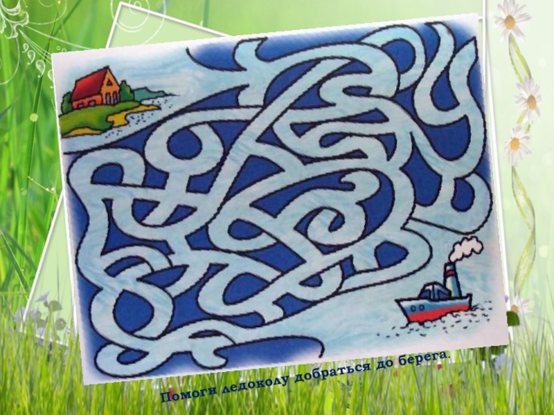 Слайд 8Помоги ледоколу добраться до берега.