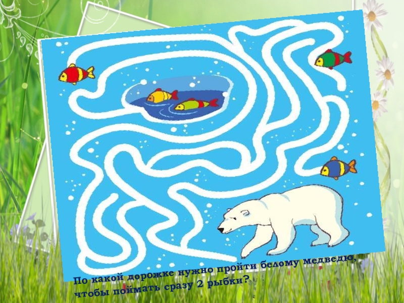 Слайд 5По какой дорожке нужно пройти белому медведю, чтобы поймать сразу 2