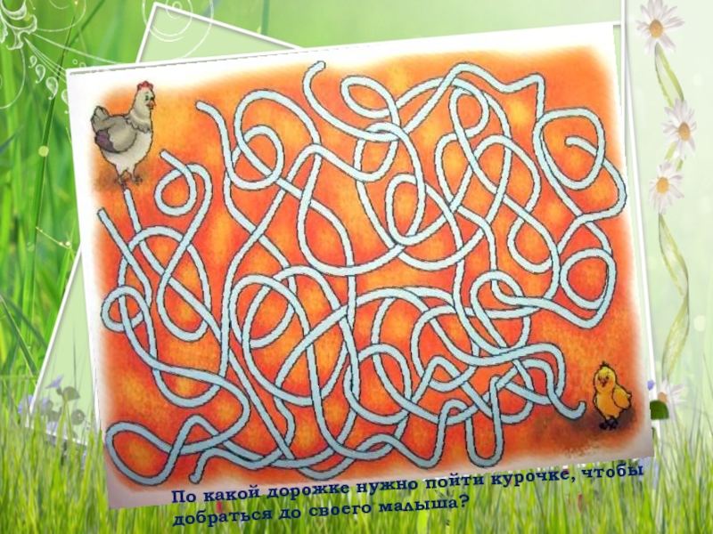 Слайд 7По какой дорожке нужно пойти курочке, чтобы добраться до своего малыша?