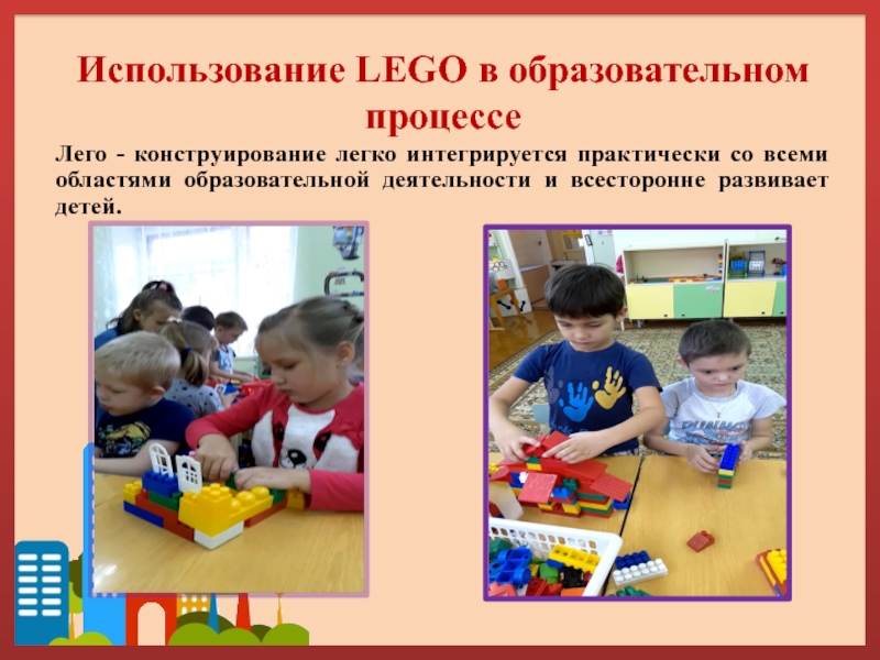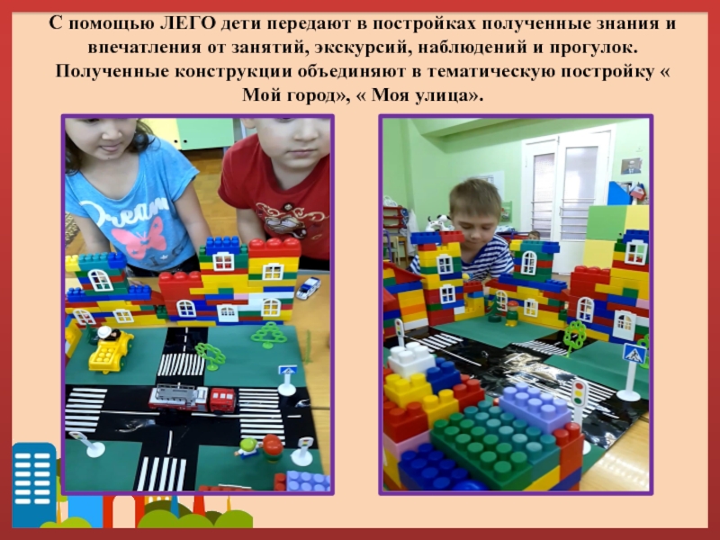 Формировать у детей умение передавать особенности предметов посредством конструктора Лего