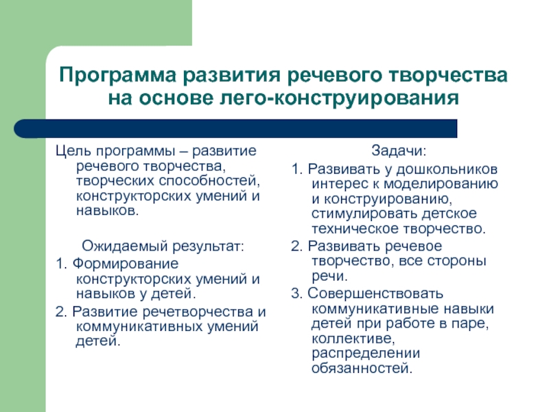 3. Разработать программу развития речевого творчества на основе лего-конструирования.