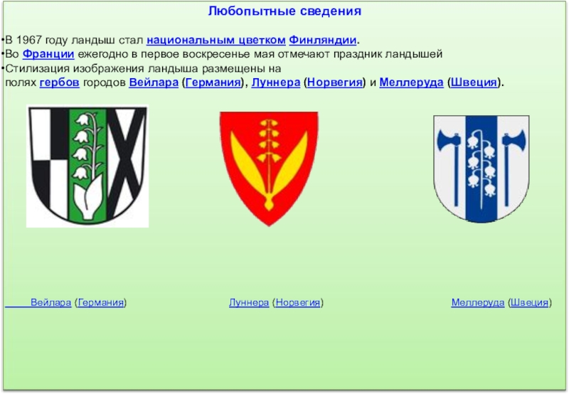 Вейлара (Германия) Луннера (Норвегия) Меллеруда (Швеция)