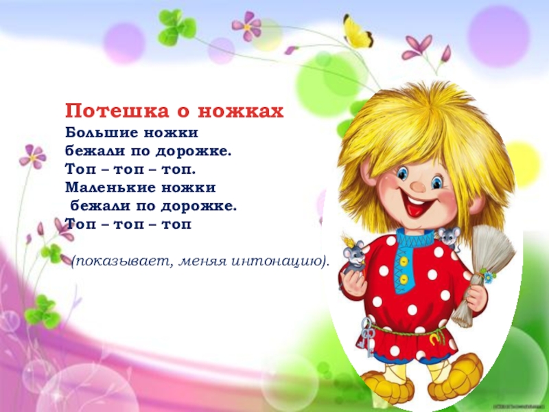 3. Выучить потешку про ножки (произносим слова топ-топ-топ с разной интонацией)