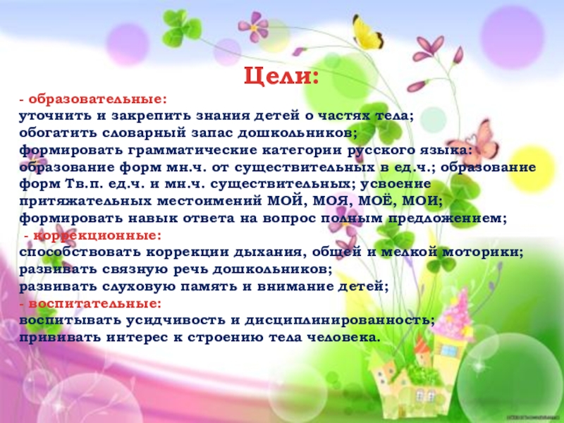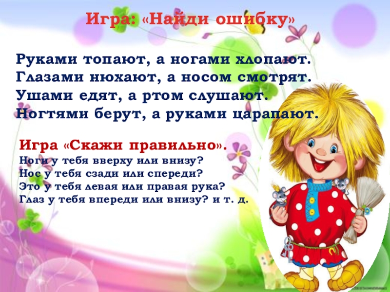 6.Речевая подвижная игра: «Части тела» (Показать на себе части тела)